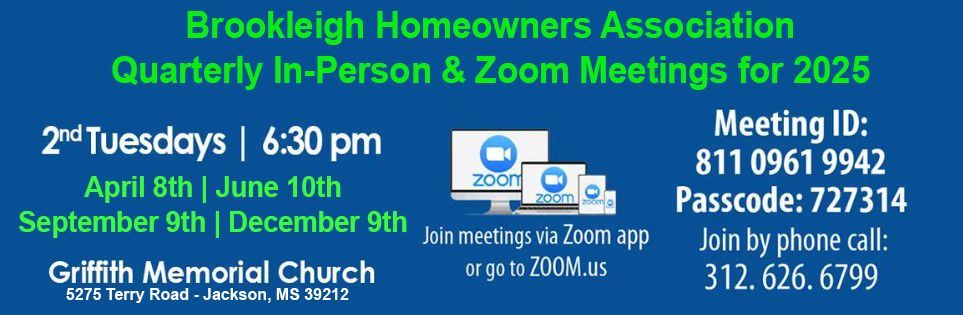 As an HOA, we are established to benefit the residents of Brookleigh Subdivisions, Hinds County, Mississippi. We are responsible for maintaining items that are not the individual homeowner’s responsibility. Our goals are to represent the interests of the homeowners by ensuring that the community assets are maintained and properly serviced at the appropriate time. Our purpose is to promote personal contact, commingling, and fellowship among the members, their families, and guests through pleasure and recreation and all other nonprofitable purposes which benefit the residents of Brookleigh Subdivision. We will strive to ensure that the community’s budget is well funded and that home values are kept at an optimal pace. We will assist in helping maintain a clean and cohesive atmosphere in our neighborhood and take care of the operational and financial matters of the HOA.